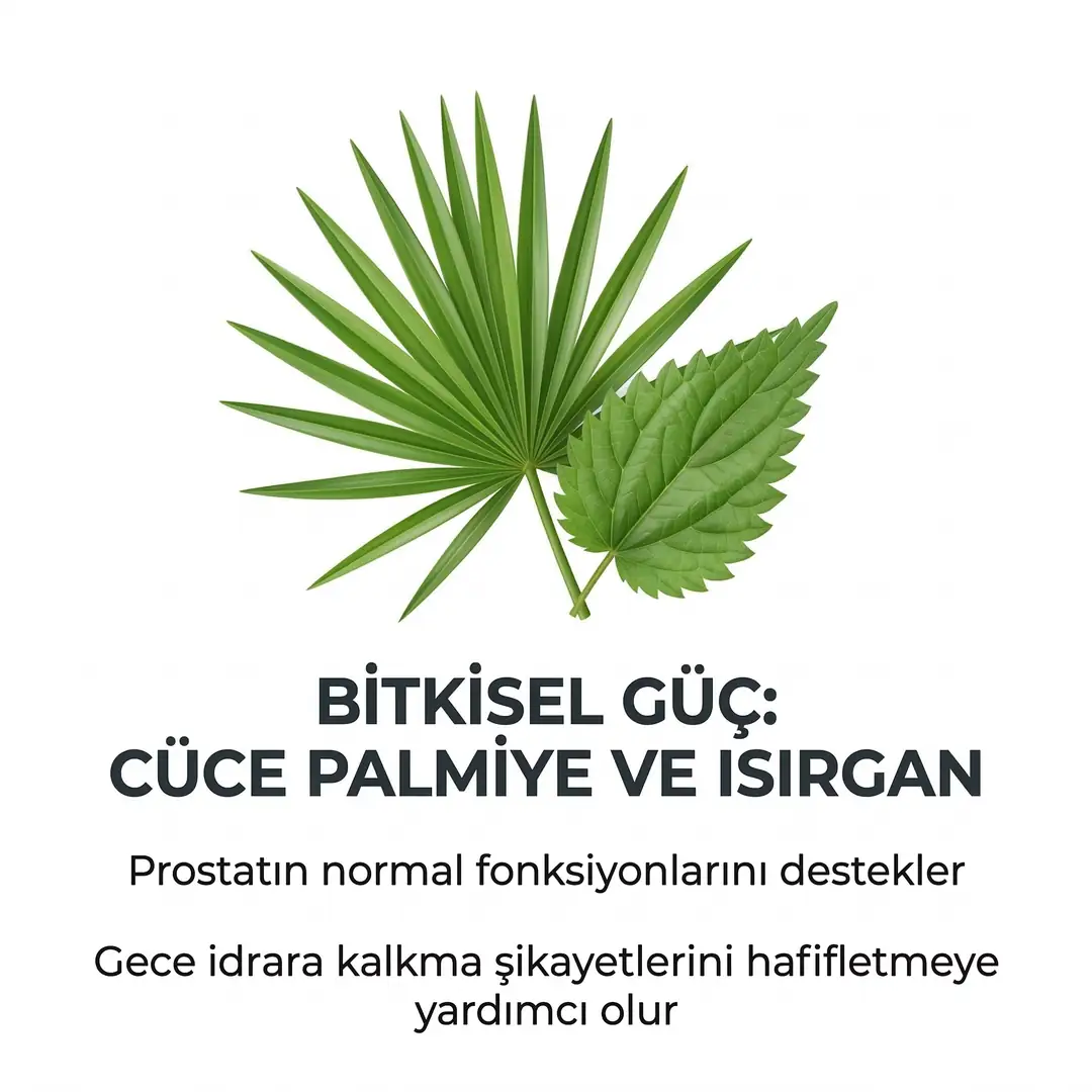 İlerleyen yaşla birlikte prostat hücrelerinde meydana gelen hücresel ve hormonal değişimler, alt idrar yollarına baskı yaparak idrar akımını zorlaştırabilir. Cüce Palmiye ekstresi, idrar akımının desteklenmesi ve prostat kaynaklı alt idrar yolu şikayetlerinin hafifletilmesinde yaygın olarak kullanılır. Düzenli kullanımı, mesane rahatlığının sağlanmasına ve özellikle gece uykularını bölen sık tuvalet ihtiyacının dengelenmesine bilimsel bir zemin sunar.